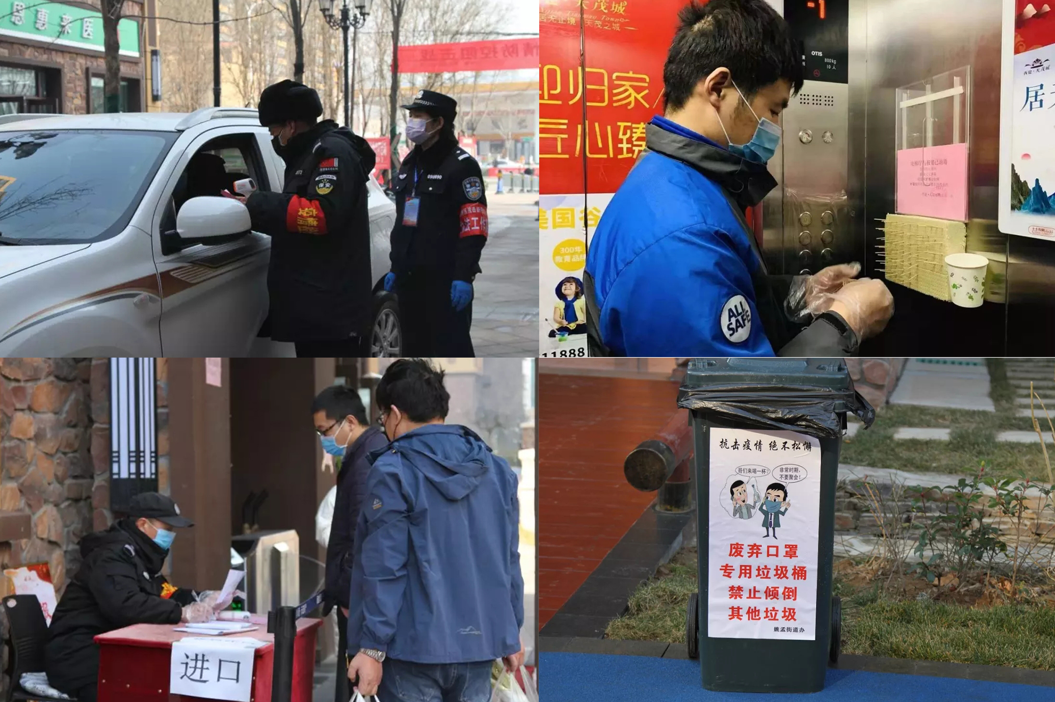 2、暫時封閉小區西門、東門及北車庫入口,留一個主要出入口。所有小區業主及備案車輛從南門(續建一期大門)進出。保安嚴格把控,人人做登記,人人測體溫,對車輛進行消毒,對非小區業主進行勸退。同時提醒廣大業主戴口罩,無緊急事情不要外出。